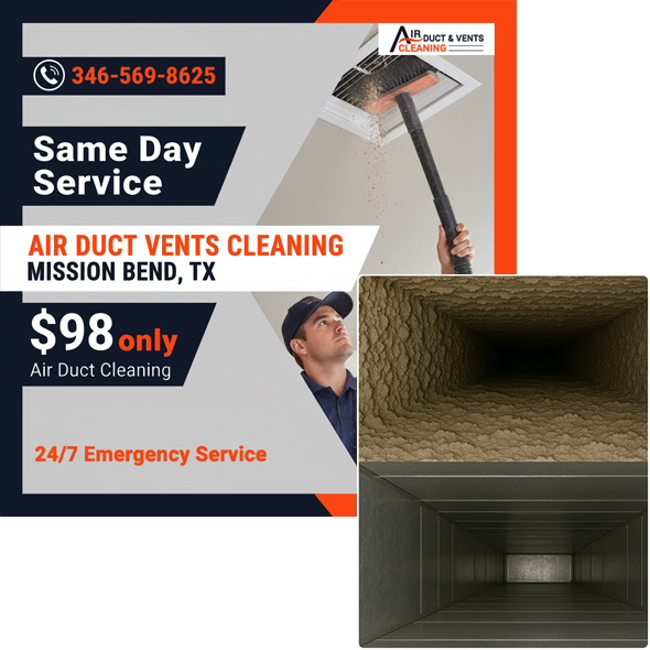 Schedule your air duct cleaning appointment today with Mission Bend TX Air Duct Vents — enjoy cleaner air, same-day service, and a free estimate!